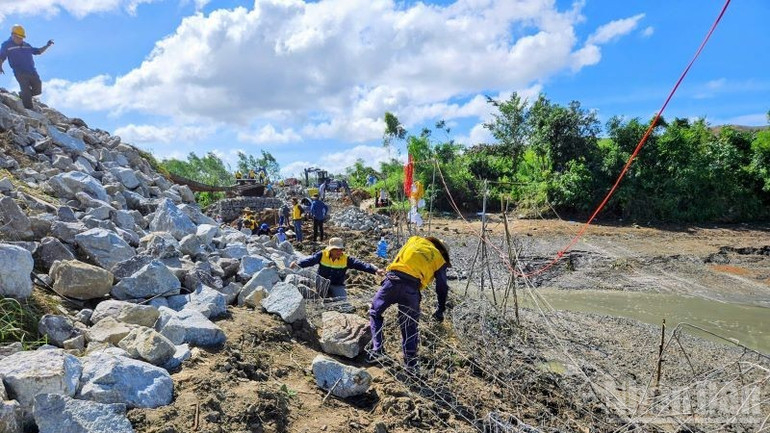 Khắc phục sạt lở trên tuyến đường sắt Hà Nội-Thành phố Hồ Chí Minh tại Km1136+850 thuộc khu gian Phước Lãnh-Vân Canh.