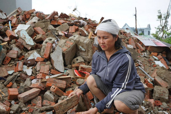 Bà Nguyễn Thị Liêu (SN 1977), thôn Phượng Mao, xã Hoằng Giang, bị thương ở đầu do nhà sập sau trận lốc xoáy.