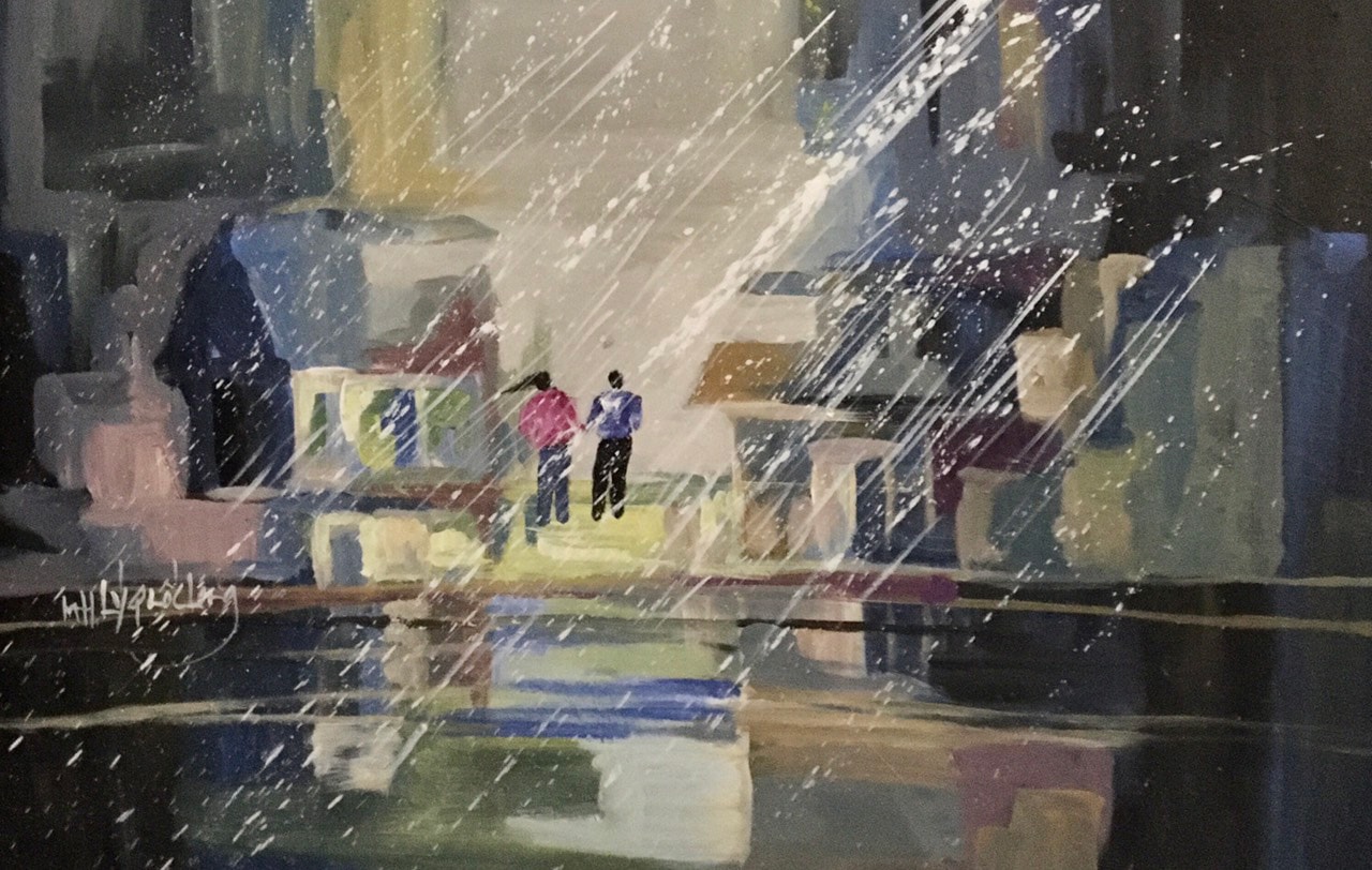 Tôi nhiều lần mắc “mưa chùng chình” trên bước đường bươn chải tìm kế sinh nhai, thường khi là đau đáu hướng về quê, lại hay thương những tình cảm mộc mạc, những lời nói rất gợi, rất dễ thương của người dân hiền lành chân lấm tay bùn, suốt ngày “bán mặt cho đất, bán lưng cho trời” vẫn giữ nụ cười trên môi. Dù xa cách mấy, quê hương vẫn mãi trong lòng người mà! Tôi không phải tạng người bị chi phối nhiều bởi ngoại cảnh, càng không thuộc nhóm người bị cuốn theo mạng xã hội ngày nay, tôi không mắc kẹt trong những chuỗi phản ứng nóng hót của đời sống hiện đại. Tự hào mình điềm tĩnh sắt đá vậy nhưng những cơn mưa chùng chình thường làm cho tôi sựng lại, bởi một nỗi nhớ quê da diết, bởi điều gì đó còn sót lại rất đáng trân trọng, mong manh nhưng lại là điểm tựa cho ta vịn vào mà đứng dậy làm người. “Ai níu giữ/ Mà mưa chùng chình tháng bảy?! /Ai quay mặt vách nhà/ Ai dụi mắt, bụi bay!?”. Cơn mưa chùng chình năm ấy trùng hợp với bước chân, ánh mắt bịn rịn của người xưa, của tuổi thanh xuân trong veo và ướt lạnh. Cảm xúc ấy khác biệt đến mức giờ đây cơn mưa chùng chình vẫn hiện diện trong tâm hồn chai sạn với quá nhiều cung bậc buồn vui, quá nhiều trạng thái tái tê dồn nén, với quá nhiều phen lên bờ xuống ruộng.