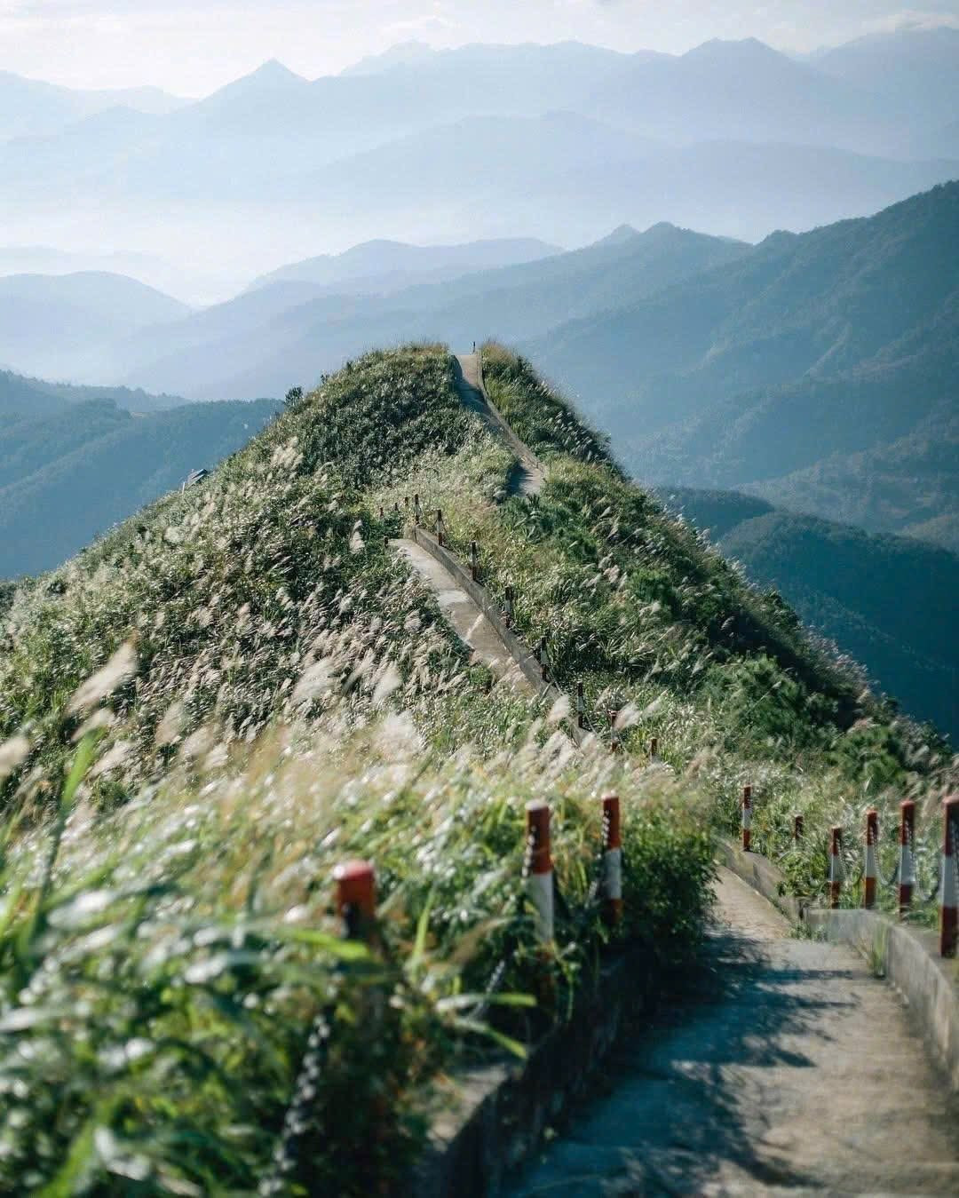 Những cung đường uốn lượn giữa đại ngàn, xen kẽ là những đồi lau bạt ngàn trong gió, tạo nên bức tranh hùng vĩ mà nên thơ hiếm có. Ảnh Ba Đứa Mình