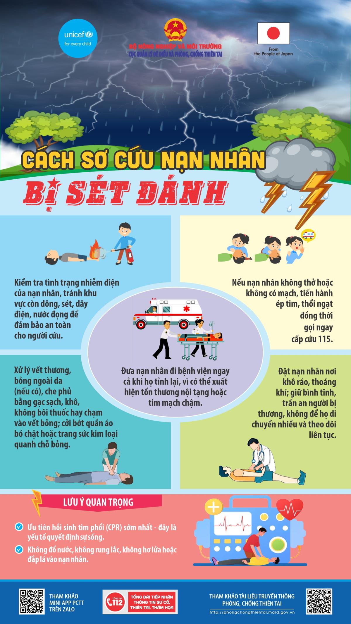 Hướng dẫn sơ cứu nạn nhân bị sét đánh. Nguồn: Cục Quản lý đê điều và phòng, chống thiên tai