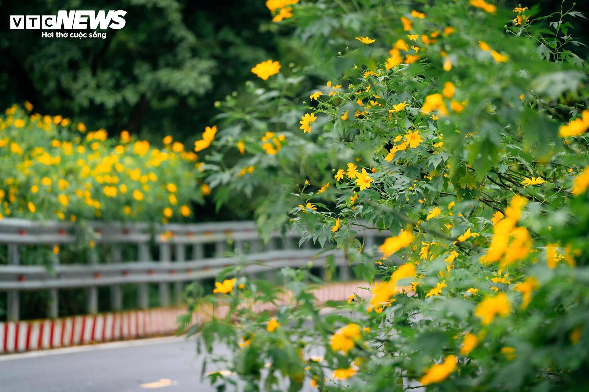 Trên cung đường dẫn vào Vườn quốc gia Ba Vì, từng vạt hoa dã quỳ đang độ bung nở, trải dài như thảm nắng, khiến nơi đây trở thành điểm hẹn của du khách mê chụp ảnh và yêu thiên nhiên.