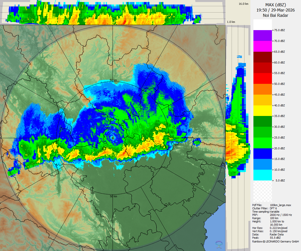 Cụ thể, trong ngày 29/3, sân bay Nội Bài ghi nhận hai đợt dông, mưa. Đợt 1 xảy ra từ 8h14 đến 10h (giờ địa phương) với cường độ mạnh, tầm nhìn ngang giảm xuống thấp nhất còn 800m. Đợt 2 xuất hiện vào chiều tối cùng ngày, song chủ yếu ảnh hưởng khu vực lân cận.