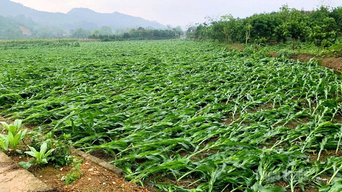 Mưa dông cũng gây thiệt hại lớn đối với sản xuất nông, lâm nghiệp với tổng diện tích bị ảnh hưởng gần 60 ha, trong đó hơn 44 ha hoa màu bị hư hại, 15 ha cây lâm nghiệp bị đổ gãy. Ngoài ra, 42 chuồng trại chăn nuôi bị tốc mái, 1,2 tấn thóc bị hư hỏng; nhiều công trình như nhà màng, hội trường thôn, cổng chào… cũng bị ảnh hưởng.