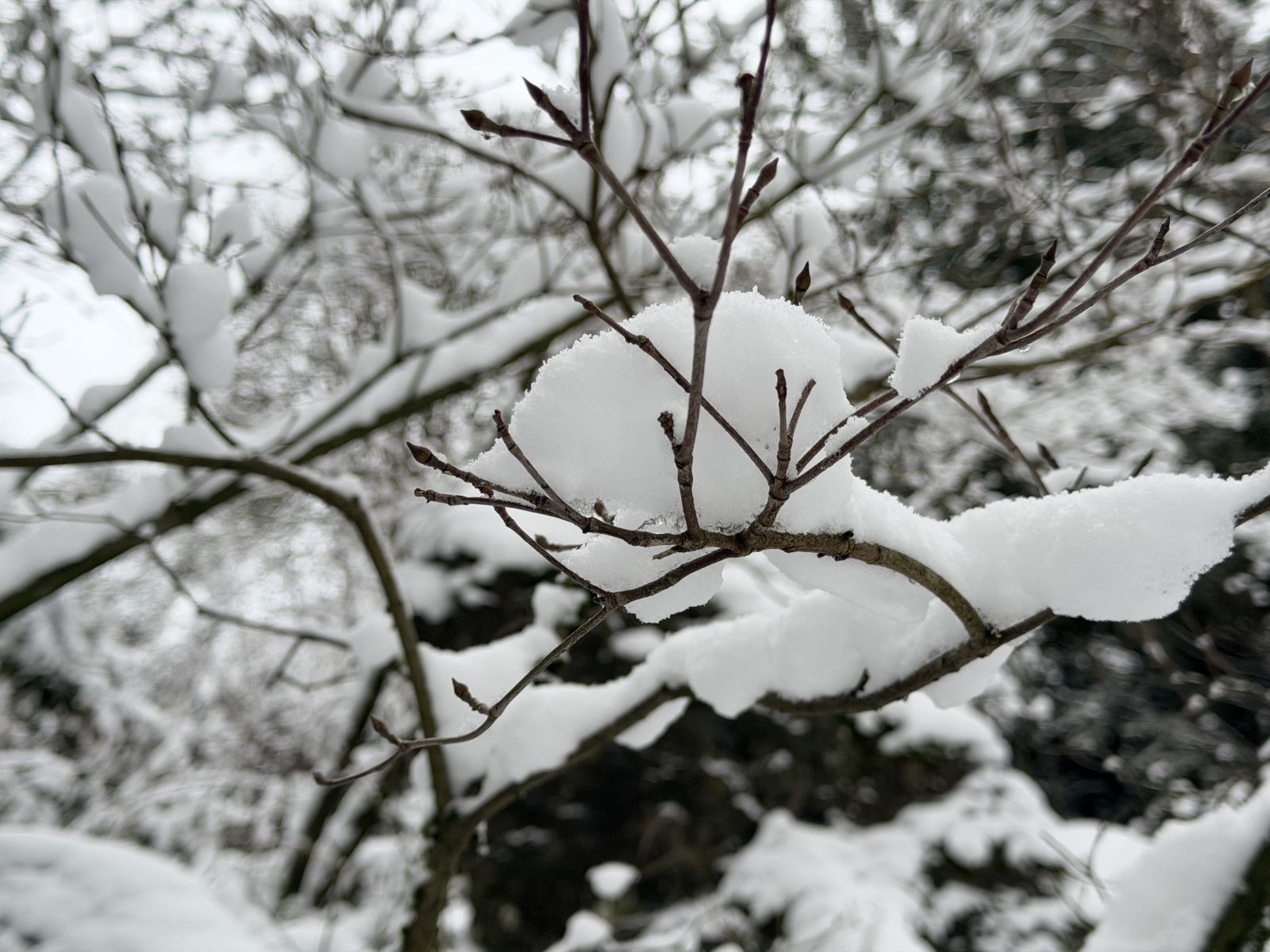 Tuyết đọng cành cây, tạo thành những “bông hoa tuyết” trắng muốt.