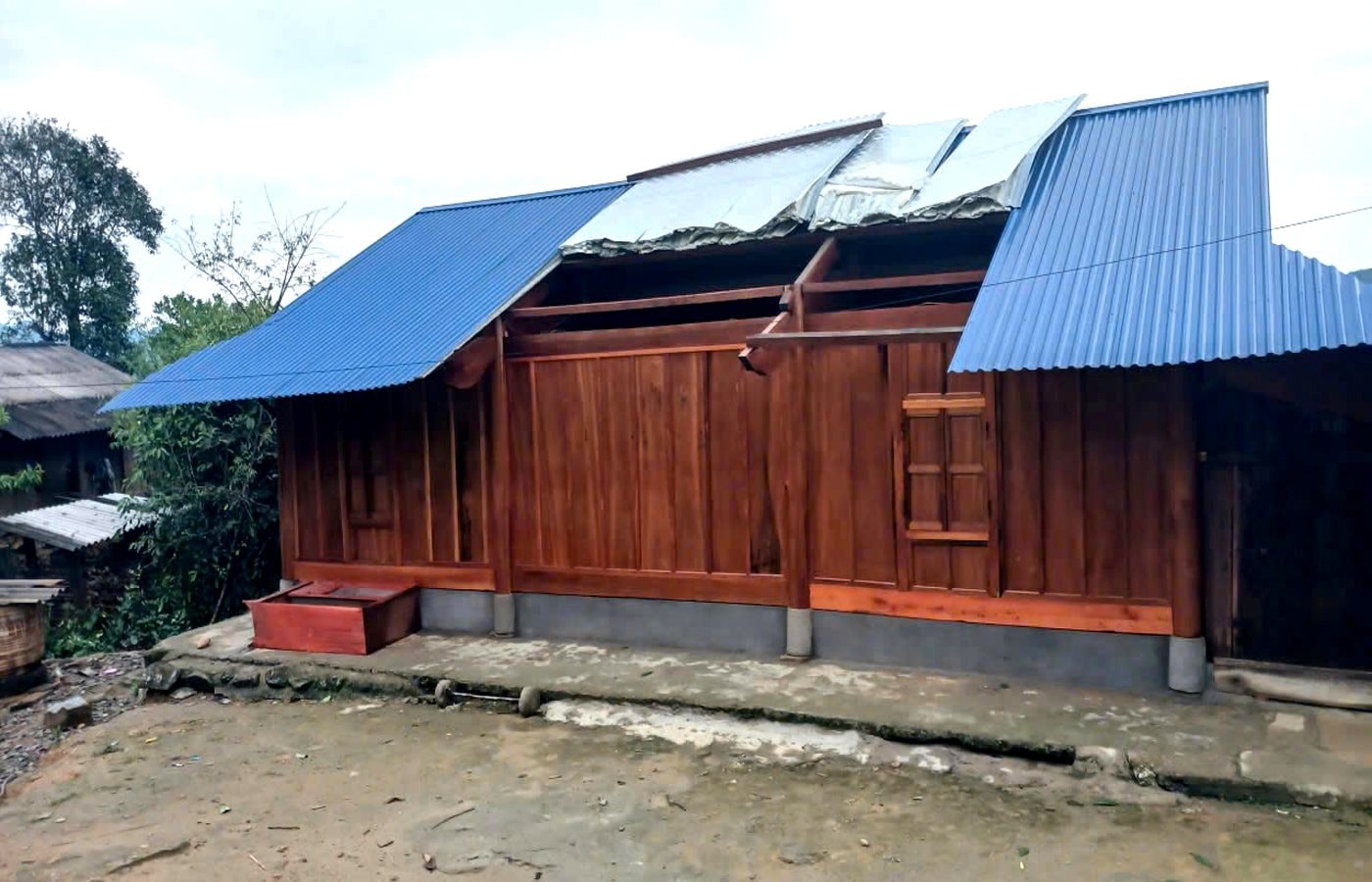 Trước đó, tại xã Keng Đu, mưa lớn đi kèm gió lốc mạnh đã làm hư hại một số công trình công cộng. Trường Mầm non Keng Đu bị tốc mái tôn khu ký túc xá giáo viên với diện tích khoảng 36m².