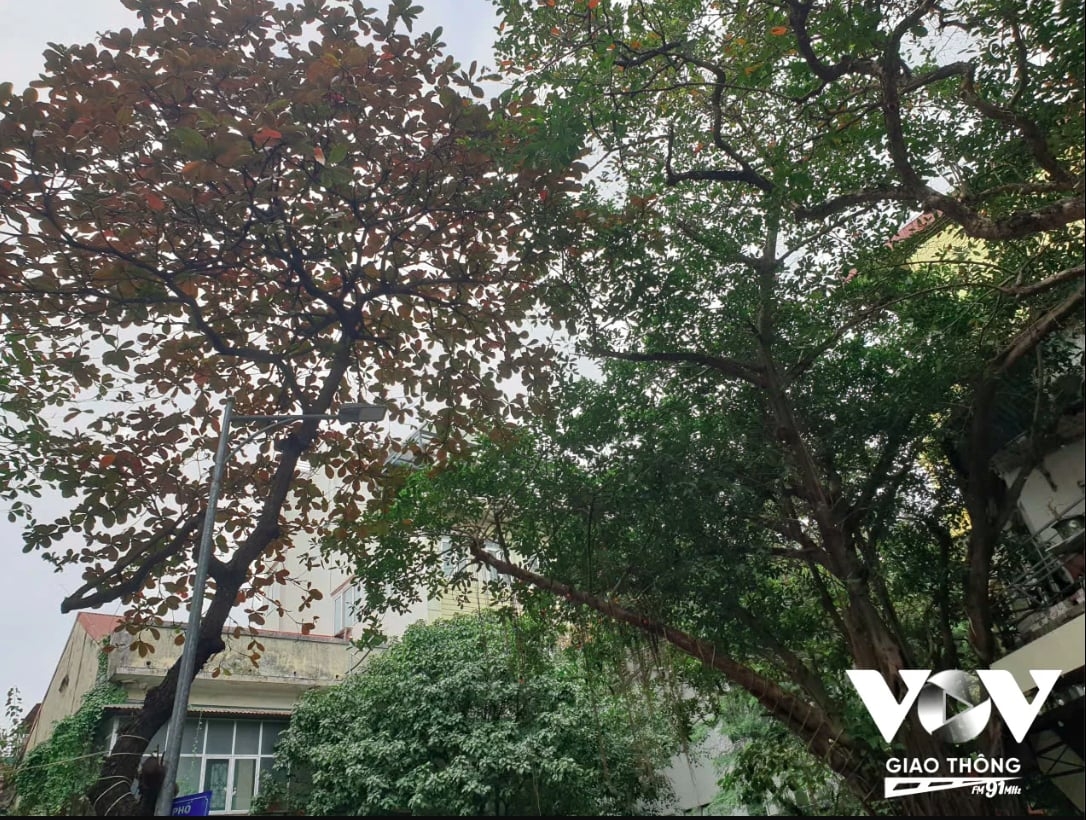 Góc phố với những cây bàng đang chuyển màu lá đỏ là những sắc màu quen thuộc của phố cổ mùa đông