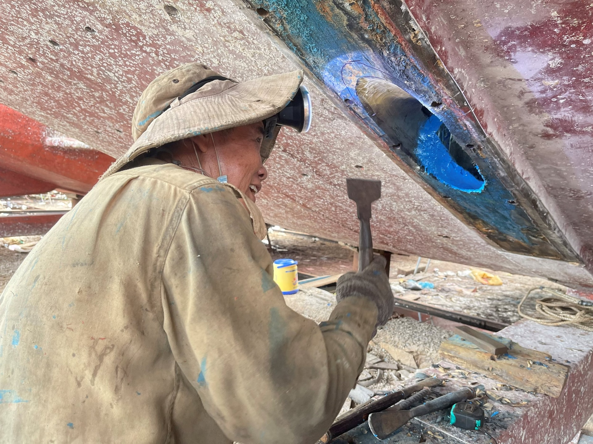 Người thợ với kinh nghiệm 40 năm gắn bó với nghề sửa chữa, tân trang tàu thuyền
