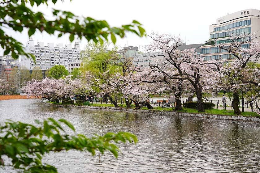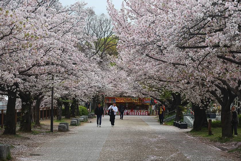 Hoa anh đào tại Lâu đài Osaka nở rộ và bắt đầu tàn. Ảnh: Japan Guide