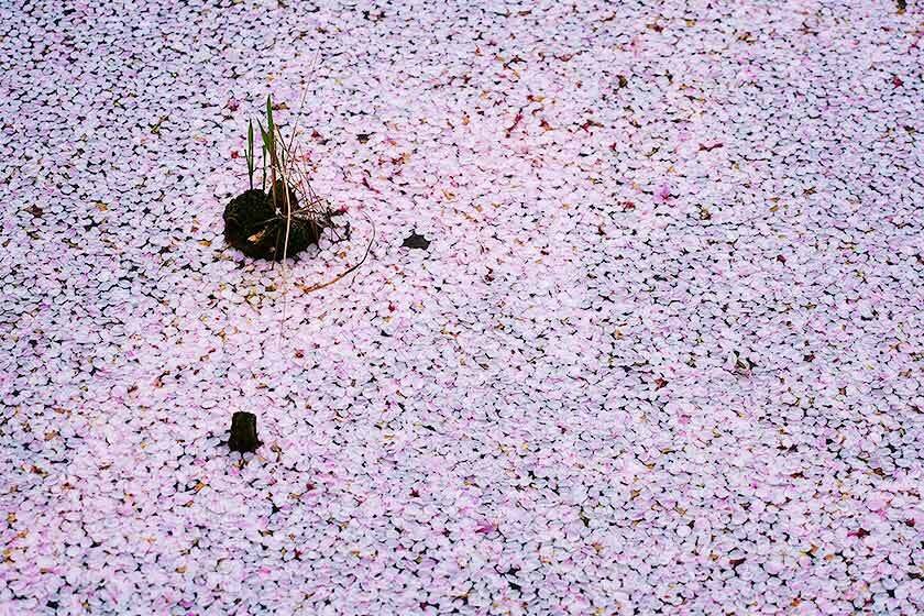 Cánh hoa phủ kín mặt đất, báo hiệu mùa anh đào tại Hàn Quốc đã bước vào những ngày cuối. Ảnh: NEWS1