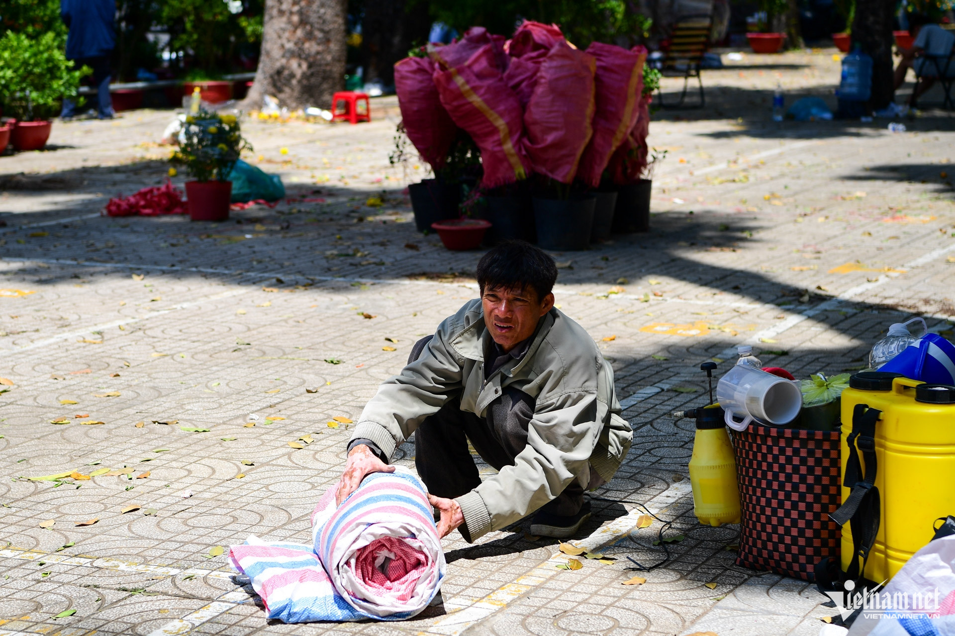 Gần 12h, khi ban tổ chức phát thông báo đóng cửa, nhiều người vội vã thu dọn, chuyển hàng ra vỉa hè hoặc cố nán lại bán thêm đến chiều.