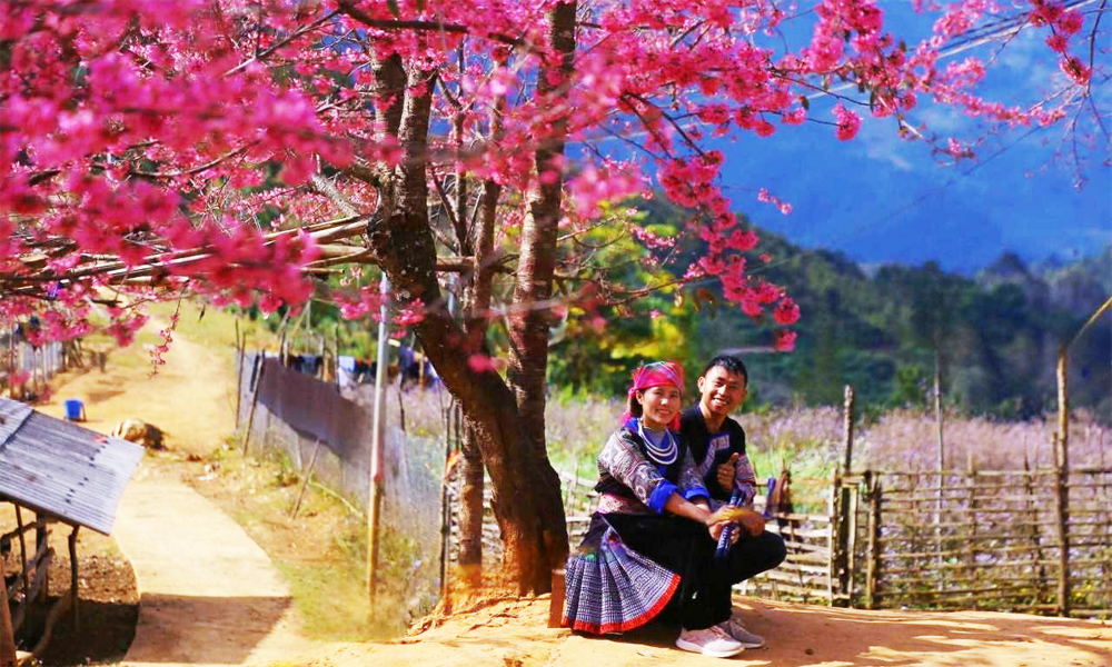 Giàng A Súa cùng vợ thực hiện các tour dẫn khách tham quan, ngắm vẻ đẹp hoa tớ dày tại Mù Cang Chải.