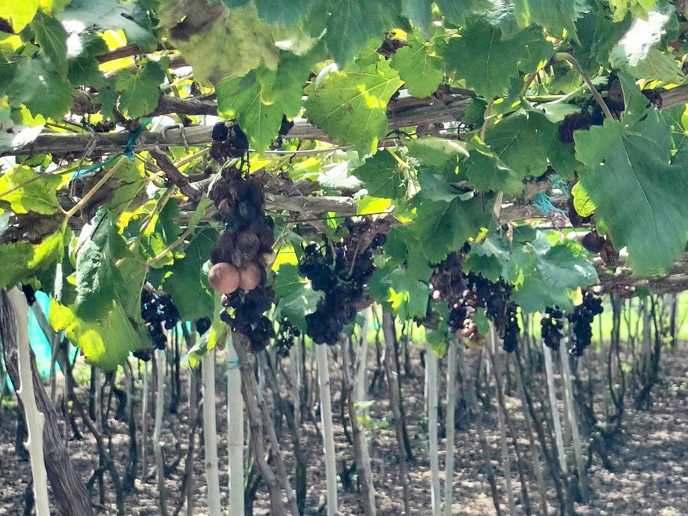 Vườn nho đỏ của gia đình chị Nguyễn Thị Ngọc Thúy Liên bị hỏng gần như toàn bộ trái.