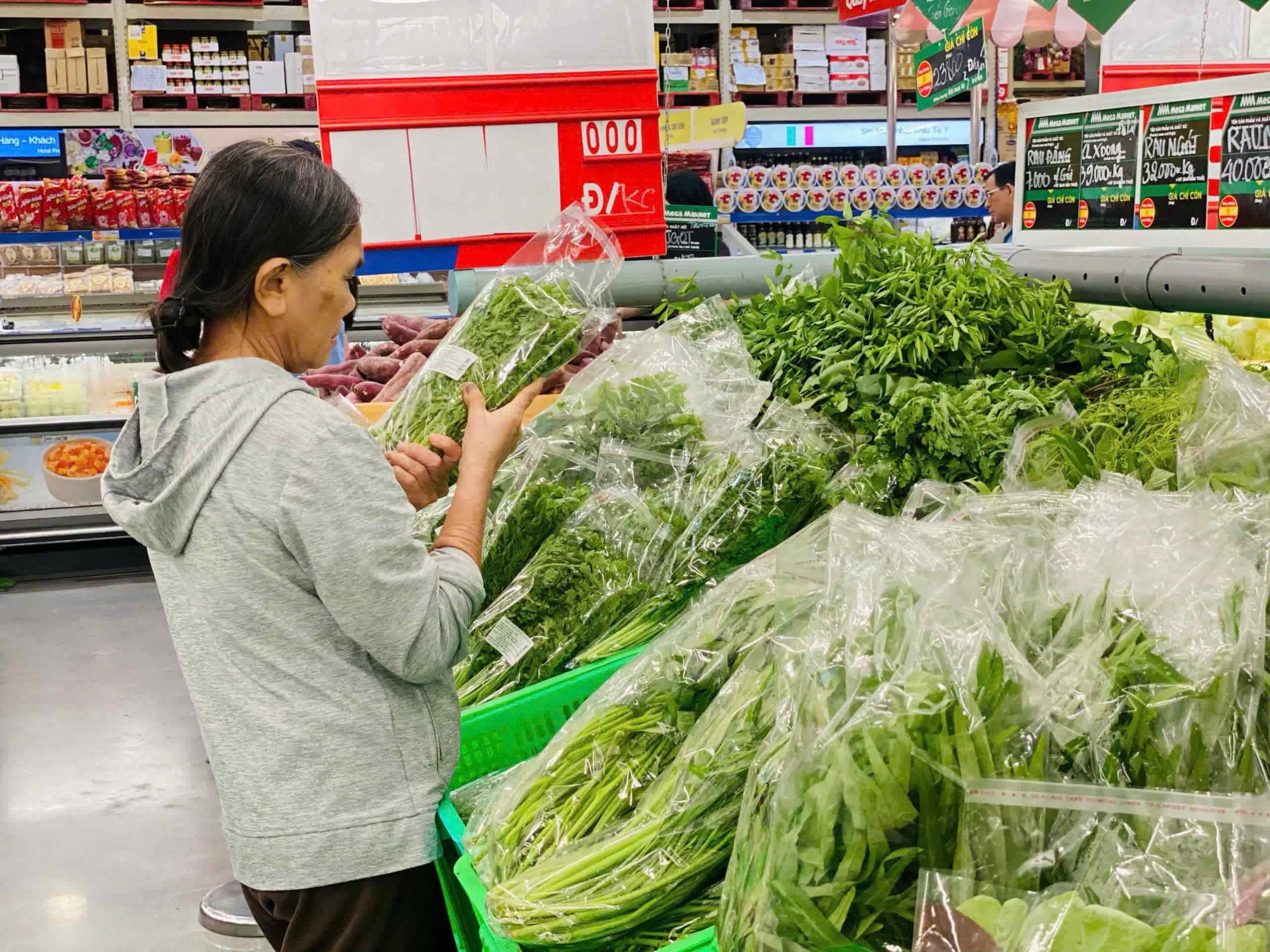 Tại một số hệ thống siêu thị ở TPHCM, giá rau xanh cũng tăng nhẹ. Ảnh: Minh Thảo