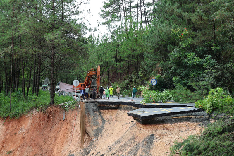 Đèo Mimosa bị sạt lở với chiều dài khoảng 70m, sâu 40m, làm đứt toàn bộ nền, mặt đường và taluy âm.