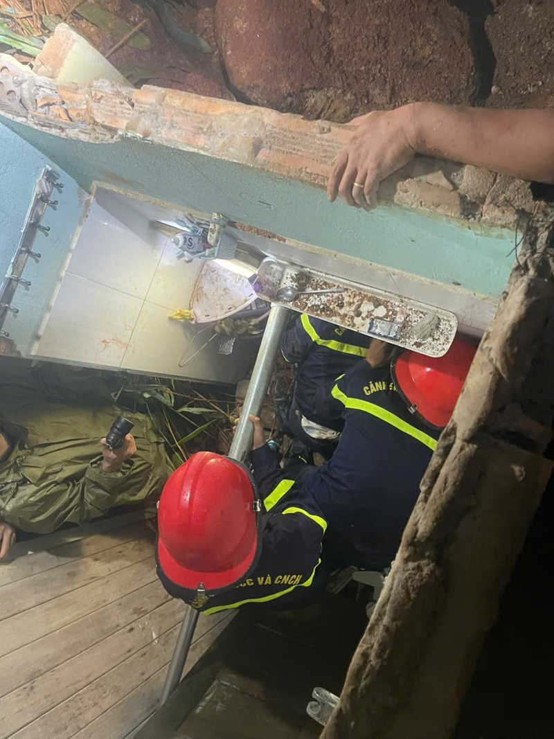 Lực lượng cứu hộ cứu cháu bé 8 tuổi ra khỏi hiện trường sạt lở tại phường Xuân Trường - Đà Lạt.