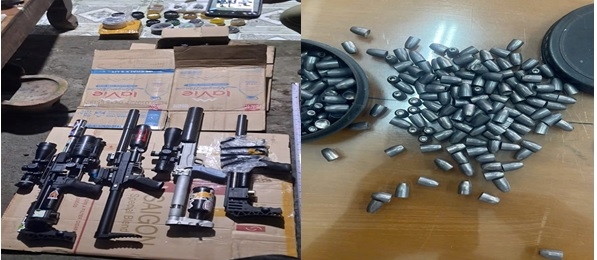 Cơ quan công an đã tiến hành khám xét nơi ở của các đối tượng, thu giữ 3 khẩu súng hơi, 1 khẩu súng Rulo, 22 hộp đạn các loại, cùng nhiều linh kiện dùng lắp ráp súng và đồ vật, tài liệu khác có liên quan.