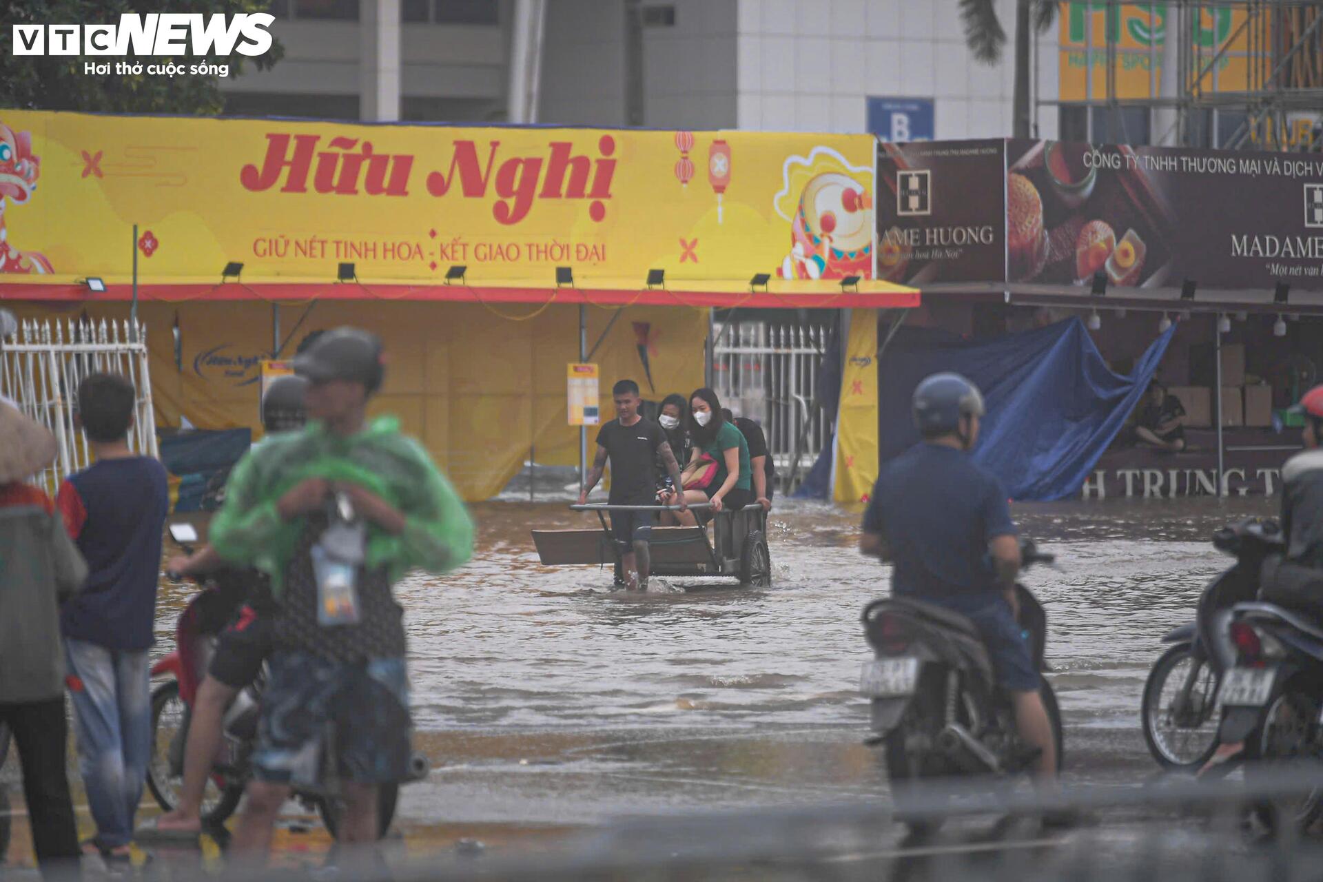 Cảnh tượng ngổn ngang, hỗn loạn kéo dài suốt buổi sáng khi nhiều người cố gắng tìm cách di chuyển qua khu vực ngập sâu.