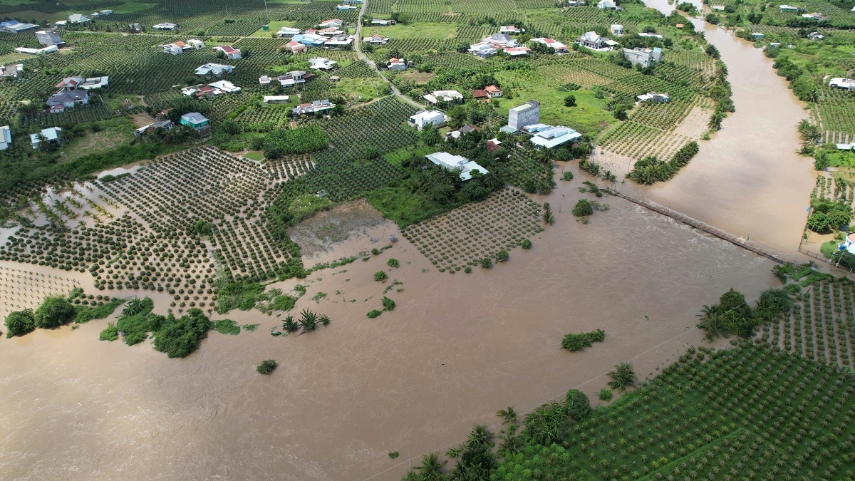 Gần khu vực cầu, nhiều vườn thanh long của người dân bị nước từ sông tràn vào gây ngập sâu. Một số vườn ngập trắng chỉ còn thấy ngọn. Ngoài ra, do mưa lớn, mực nước hồ Núi Đất ở cao trình +23,73m, cao hơn mực nước dâng bình thường 0,23 m và đang tiếp tục tăng.