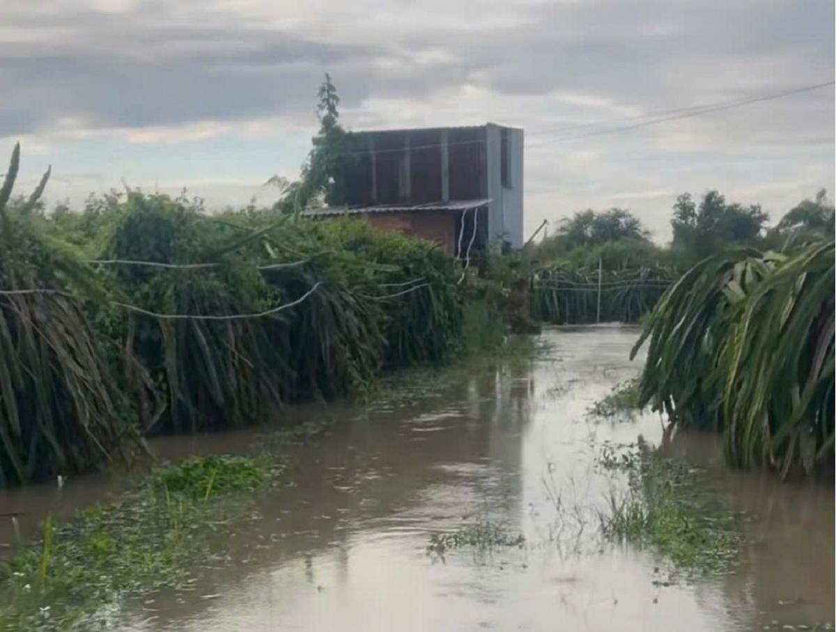 Nhiều diện tích thanh long bị ngập sâu (Ảnh: B.H)