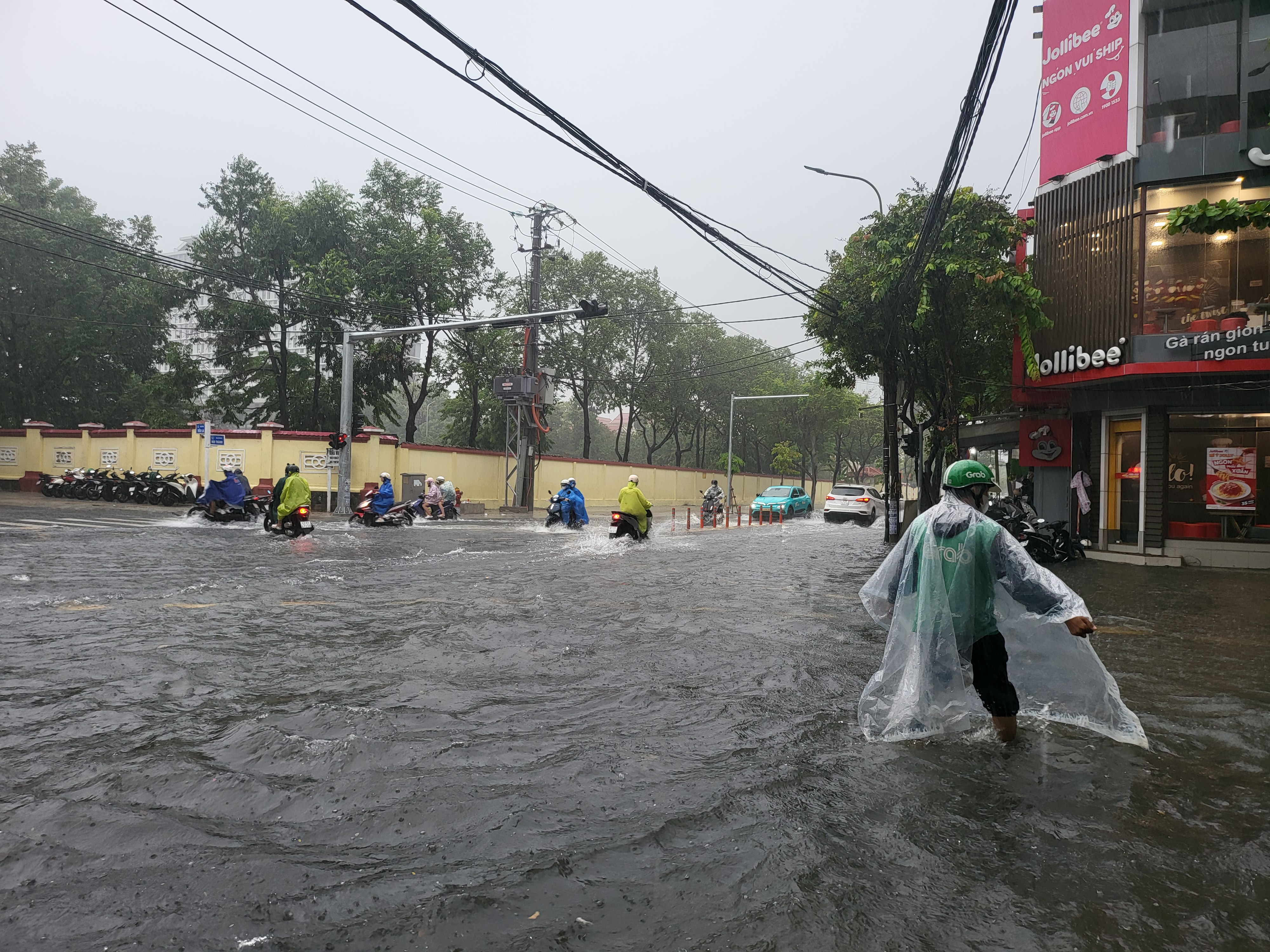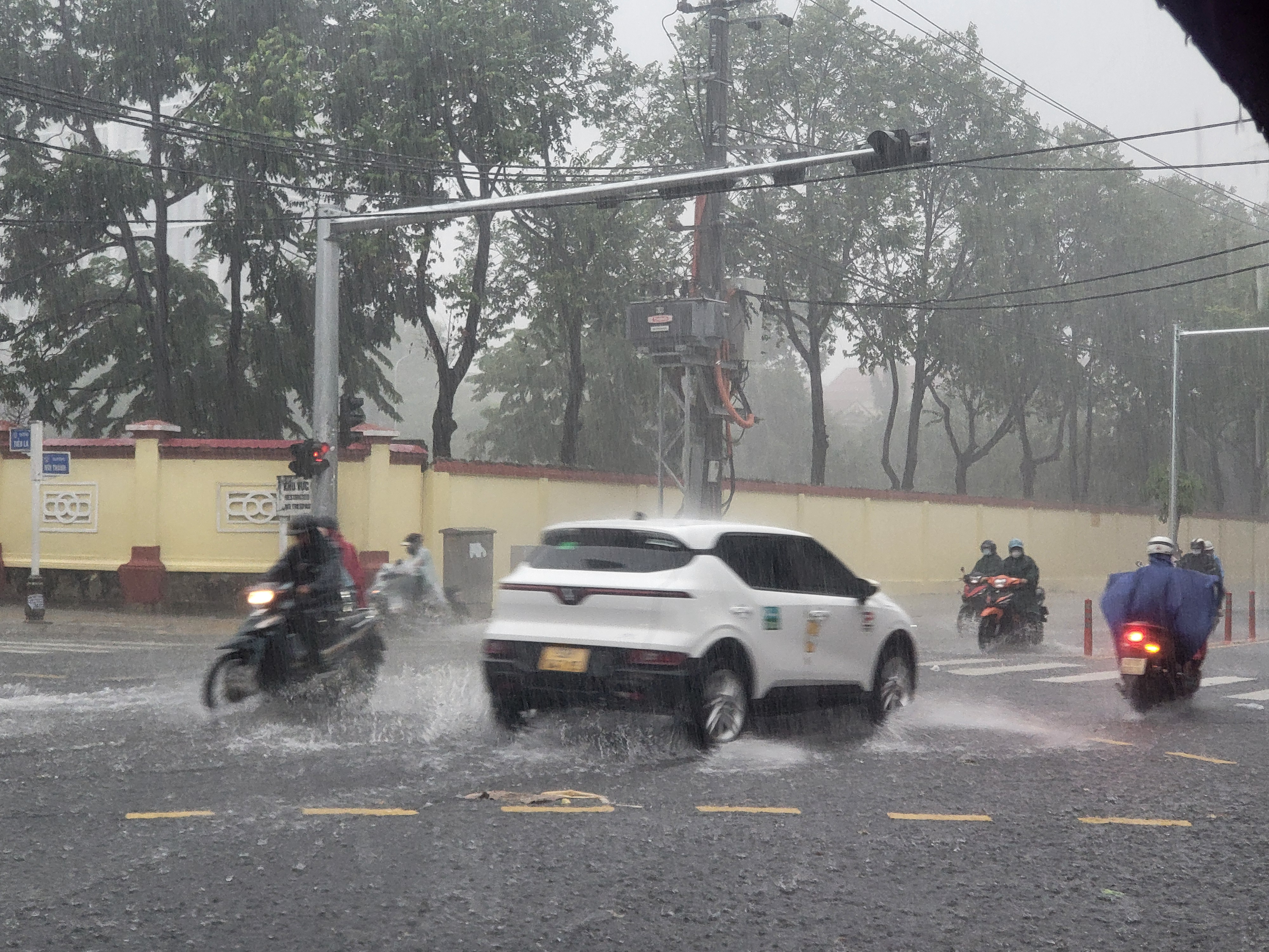 Một số đoạn đường thấp trũng bị ngập cục bộ, nước dâng nhanh khiến nhiều phương tiện di chuyển khó khăn. Tuy nhiên, mưa giảm thì nước cũng rút nhanh, giao thông sớm trở lại bình thường.