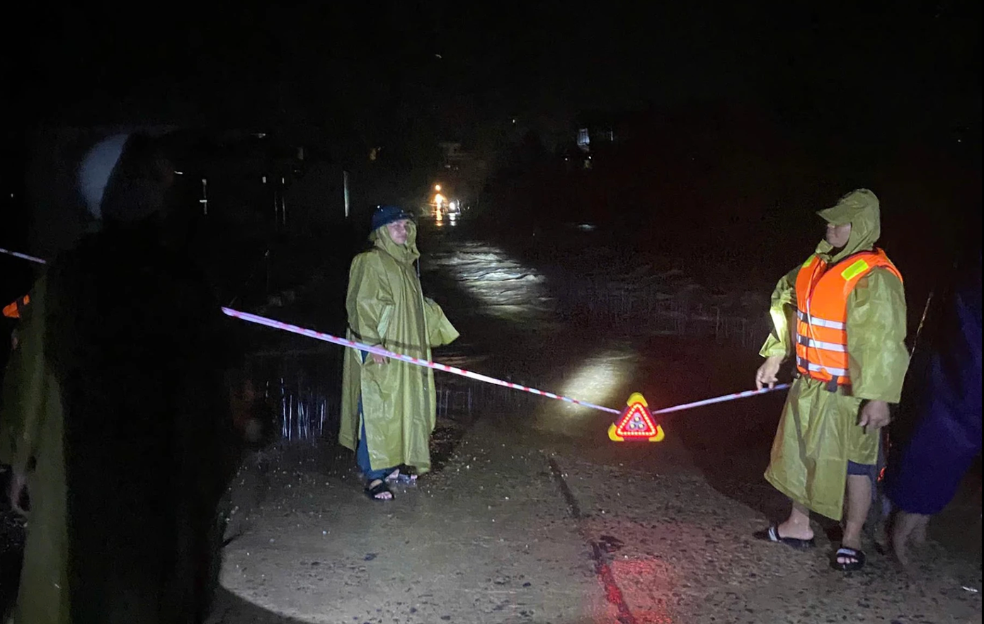 Ở xã Trung Khánh Vĩnh, mực nước các khe suối lên nhanh, cầu tràn thôn Ba Cẳng (đường lên thủy điện Sông Chò) bị ngập, tiềm ẩn nguy hiểm; lực lượng chức năng căng dây cảnh báo và cấm người dân qua lại.
