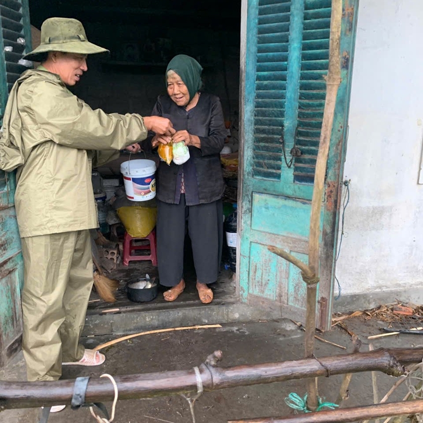 Lực lượng địa phương hỗ trợ nhu yếu phẩm cho người dân bị ảnh hưởng ngập lụt tại phường Hóa Châu, sáng 27/10.