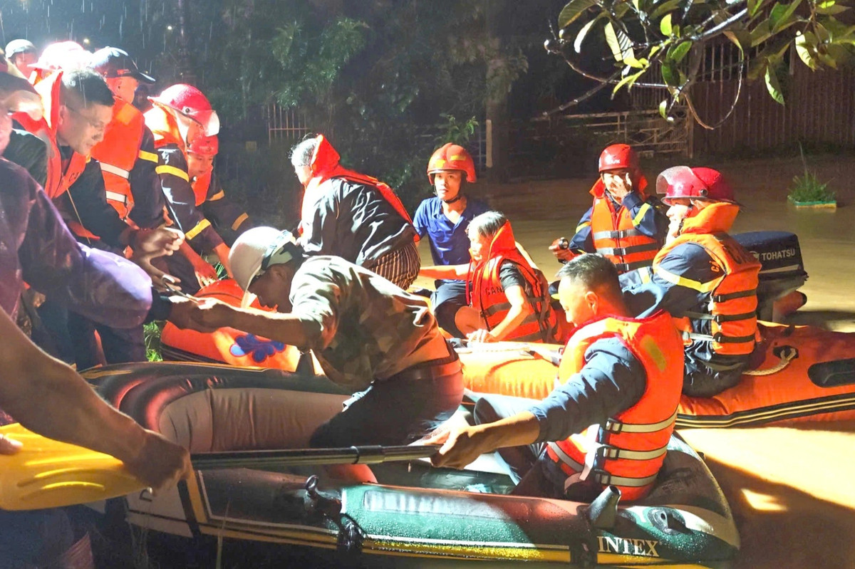 Lực lượng chức năng sơ tán người dân vùng ngập lụt tại xã Hiệp Thạnh đến nơi an toàn (Ảnh: An Chi).