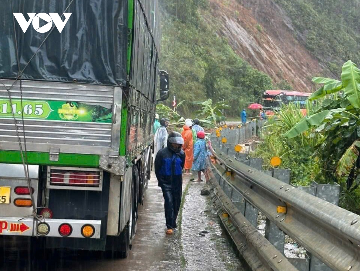 Các phương tiện phải dừng lưu thông do sạt lở.
