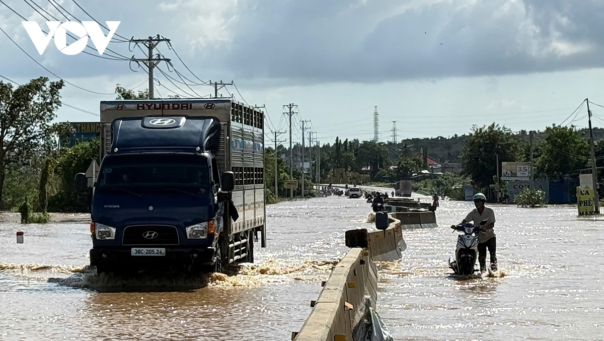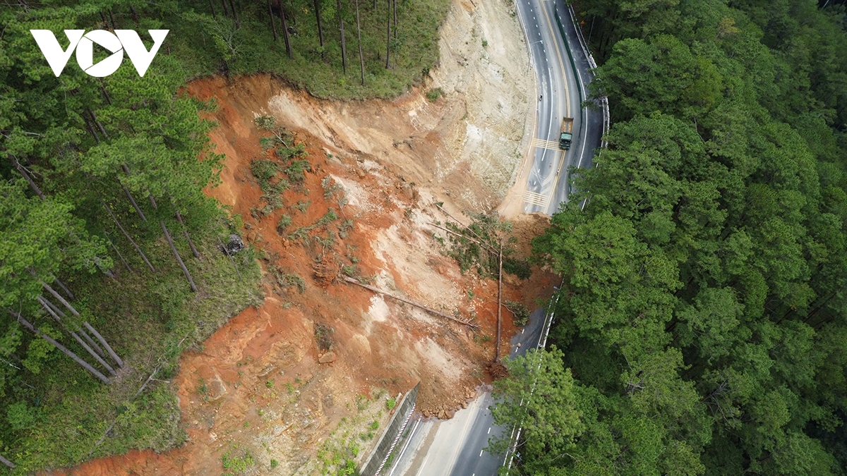 Phóng viên Quang Sáng/VOV-Tây Nguyên cho biết, tại các tuyến đèo Mimosa, Gia Bắc, D’Ran và Prenn, mưa lớn làm đất đá, cây rừng từ taluy dương đổ ập xuống mặt đường, gây ách tắc hoàn toàn một số đoạn. Đèo Mimosa tái sạt lở tại vị trí đường tạm Km 226+700 chỉ sau vài ngày được thông tuyến; lực lượng chức năng phải cấm xe lưu thông và huy động máy móc thu dọn khối lượng lớn bùn đất.
