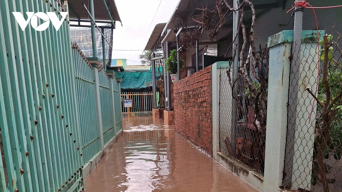 Mưa lớn, nước thượng nguồn đổ về nhiều khiến phường Hàm Thắng, tỉnh Lâm Đồng ngập sâu.