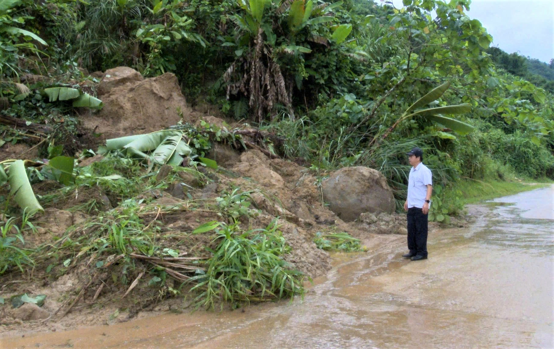 Điểm sạt lở trên tuyến ĐH3 tại Tăk Nâng - Tong Pua (thôn 3, xã Trà Tập). Ảnh: T.T