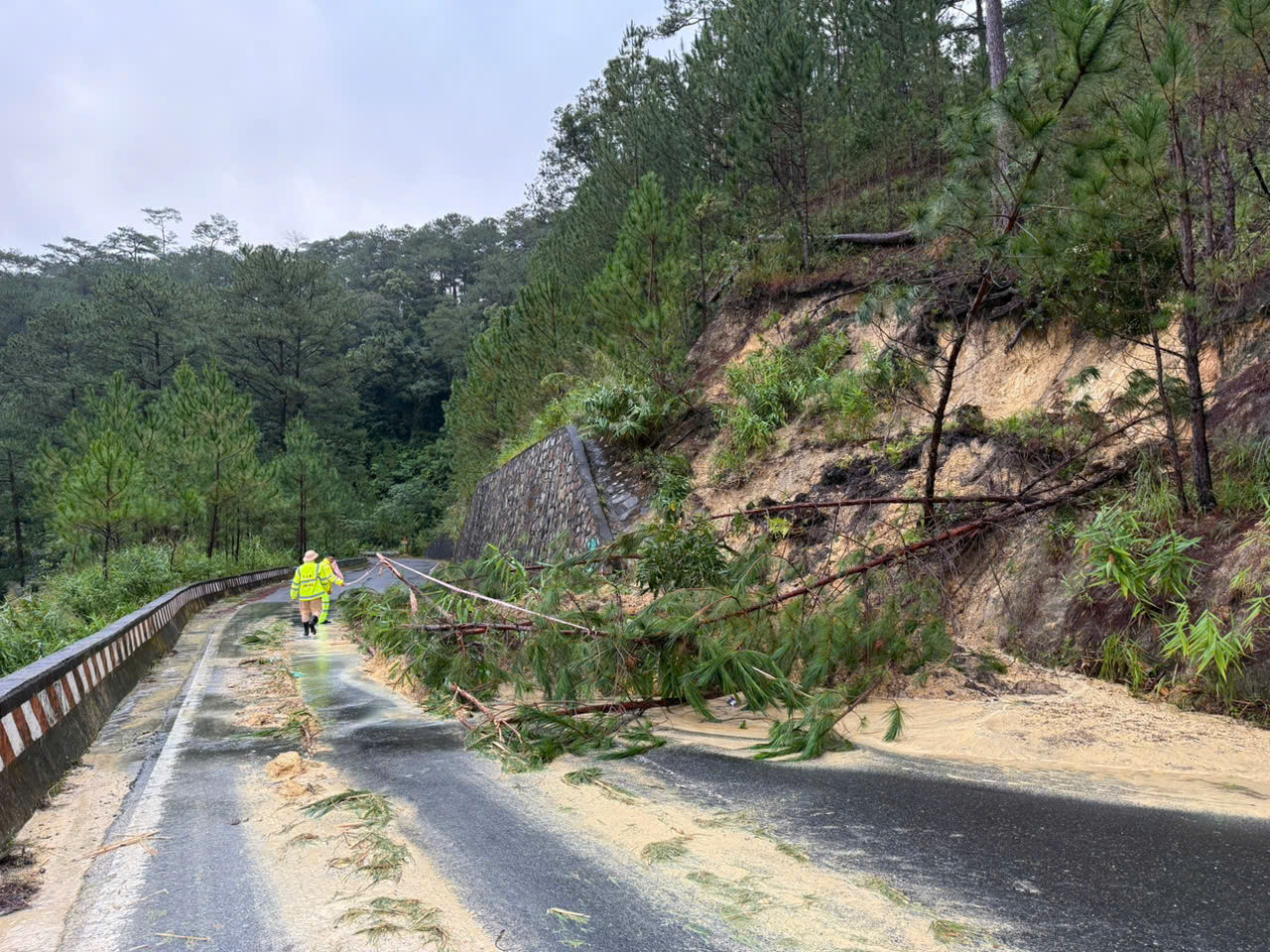 Đèo Prenn, đèo Sa Com cũng xuất hiện nhiều điểm cây rừng ngã đổ, được lực lượng chức năng xử lý để đảm bảo phương tiện lưu thông.