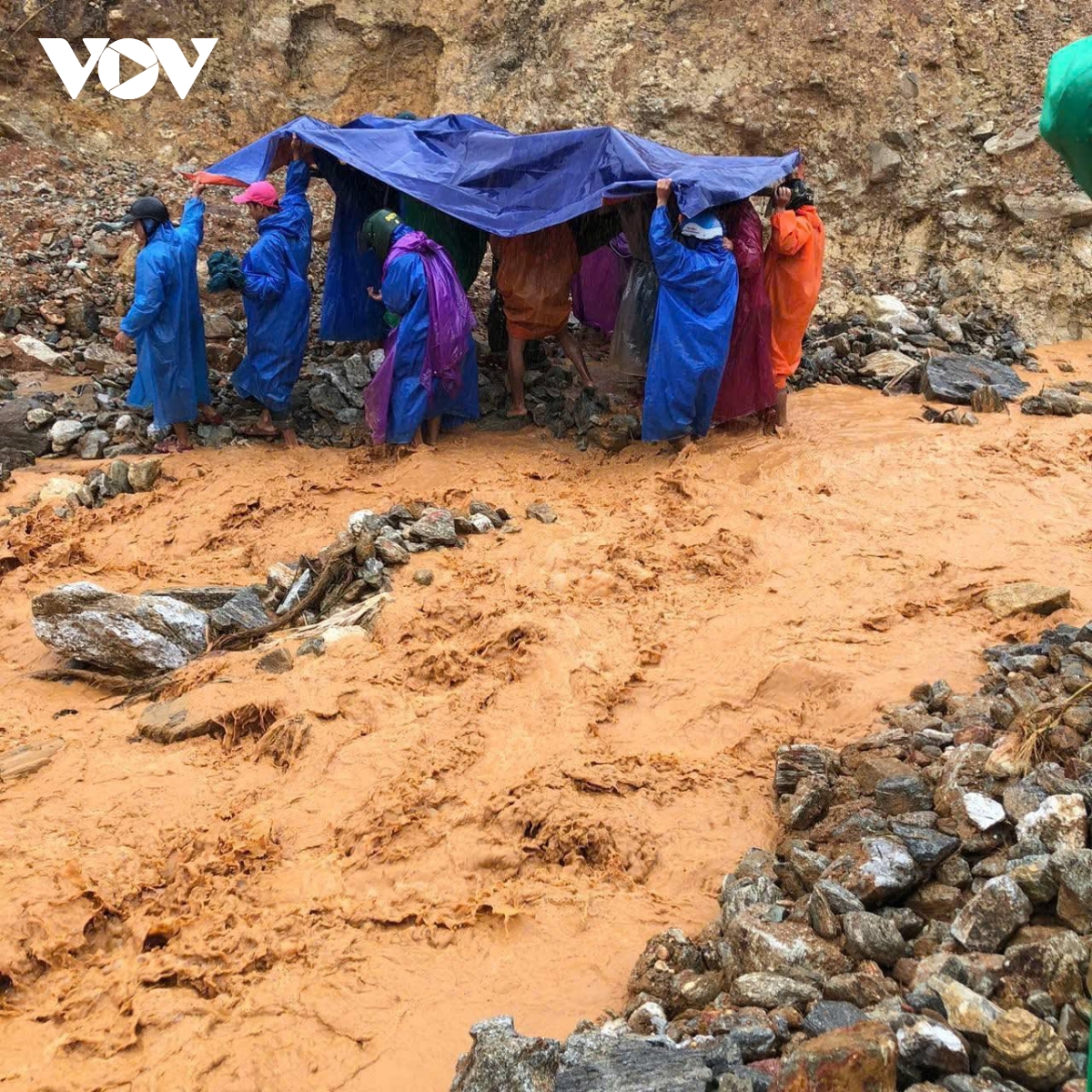 Mưa lớn chưa dứt nên việc khơi thông các điểm sạt lở chưa thể triển khai đồng loạt. Chính quyền các xã miền núi bố trí máy móc và lực lượng ứng trực, sẵn sàng mở đường khi thời tiết cho phép. Ông Trần Văn Mẫn, Chủ tịch UBND xã Nam Trà My thông tin: “Đường ĐH6 không lưu thông được nên chúng tôi mở đường tạm đi vòng qua bên đồi để người dân đi bộ. So với đường ĐH6 thì thời gian di chuyển trên đường tạm này dài gấp 3 lần”.