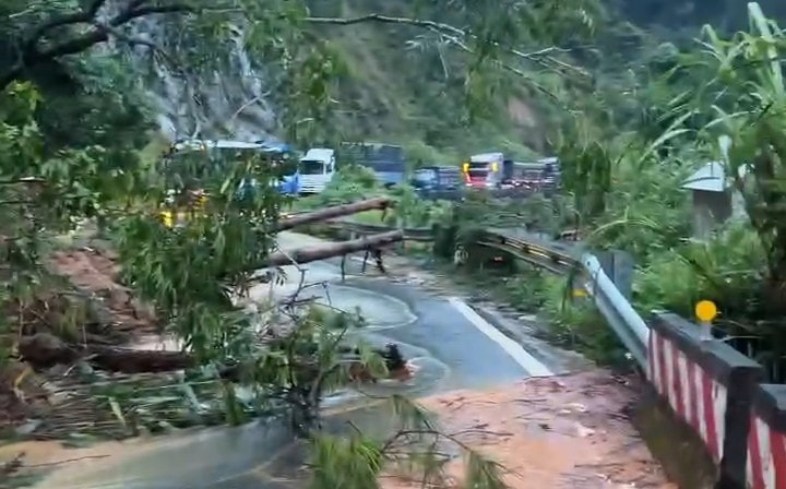 Trên tuyến Quốc lộ 27C, lúc 22 giờ ngày 16/11, tại Km45 thuộc địa phận tỉnh Khánh Hòa đã xảy ra sạt lở taluy dương, đất đá và cây cối tràn xuống đường, vùi lấp một xe khách.