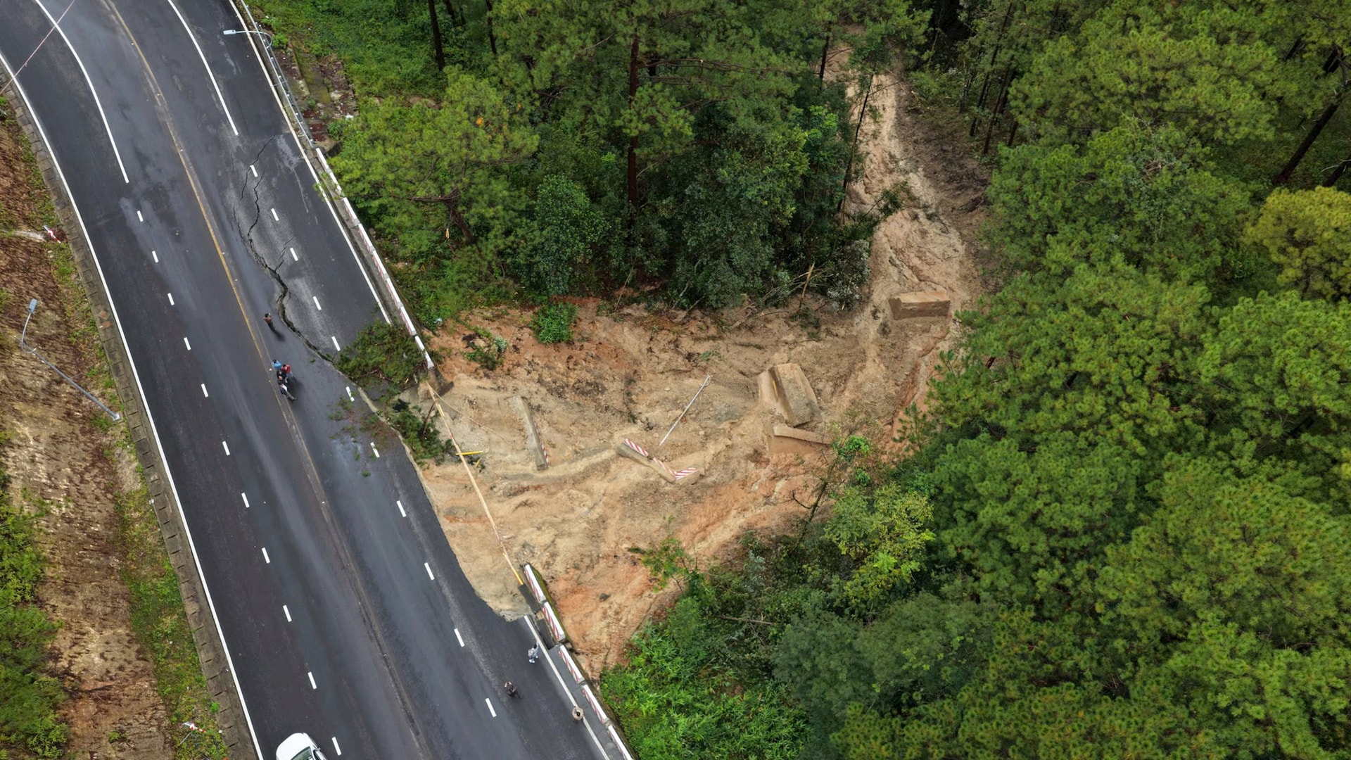 Góc nhìn từ trên cao về sự cố sạt lở trên đèo Prenn