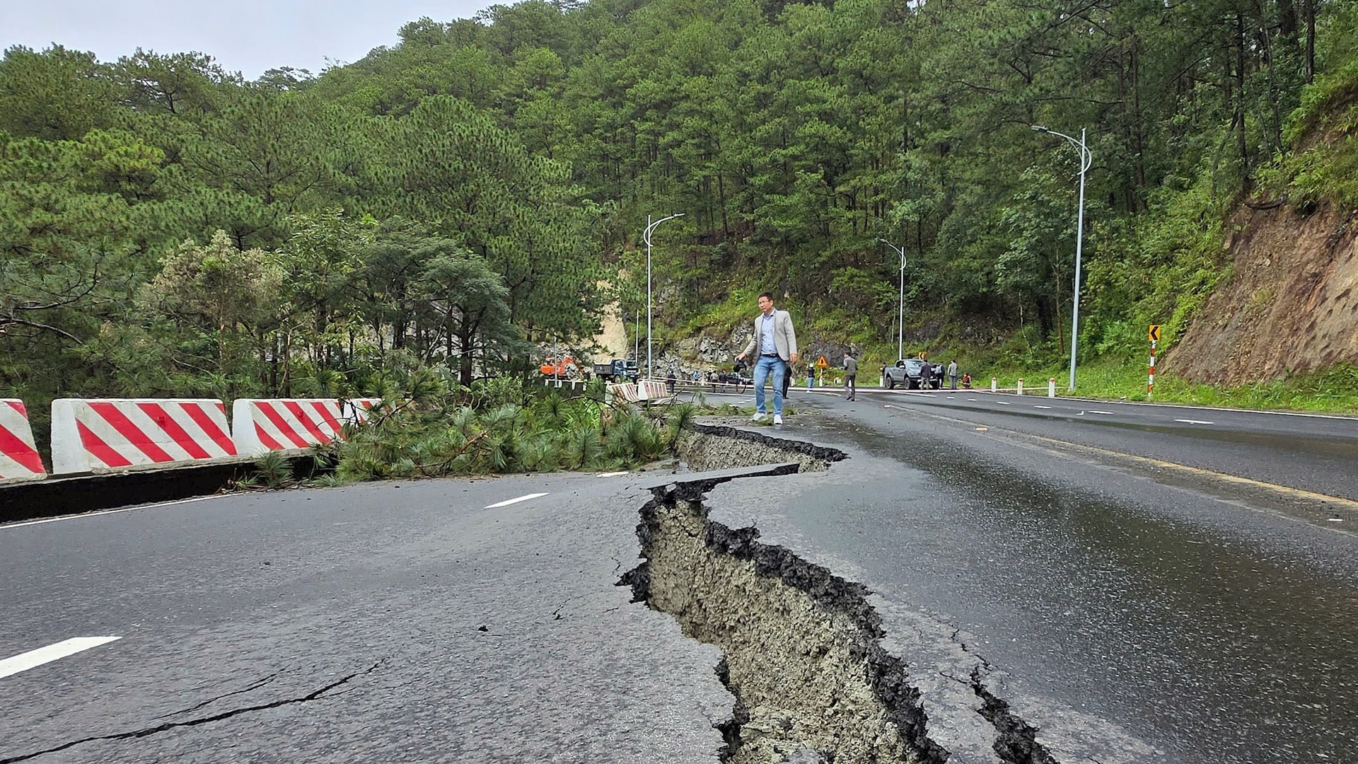 Tuyến giao thông qua đèo Khánh Lê – Đà Lạt bị chia cắt. Các đơn vị quản lý đang phân luồng tại Km114 và triển khai hót dọn nhiều điểm sạt lở thuộc địa phận Lâm Đồng.