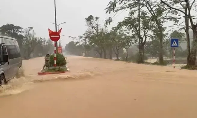 Một số tuyến đường ở Huế bị ngập, nước chảy siết do mưa lớn. Ảnh: TTXVN