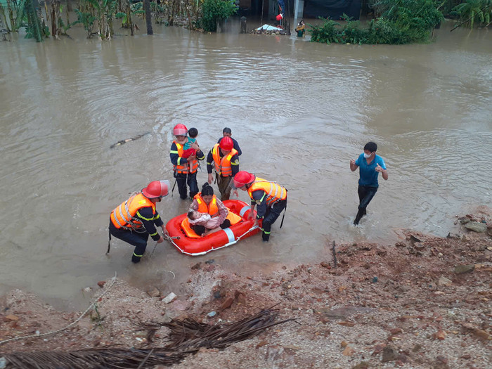 Lực lượng chức năng tại Gia Lai hỗ trợ bà con đến nơi an toàn. Ảnh: Thông tin Chính Phủ