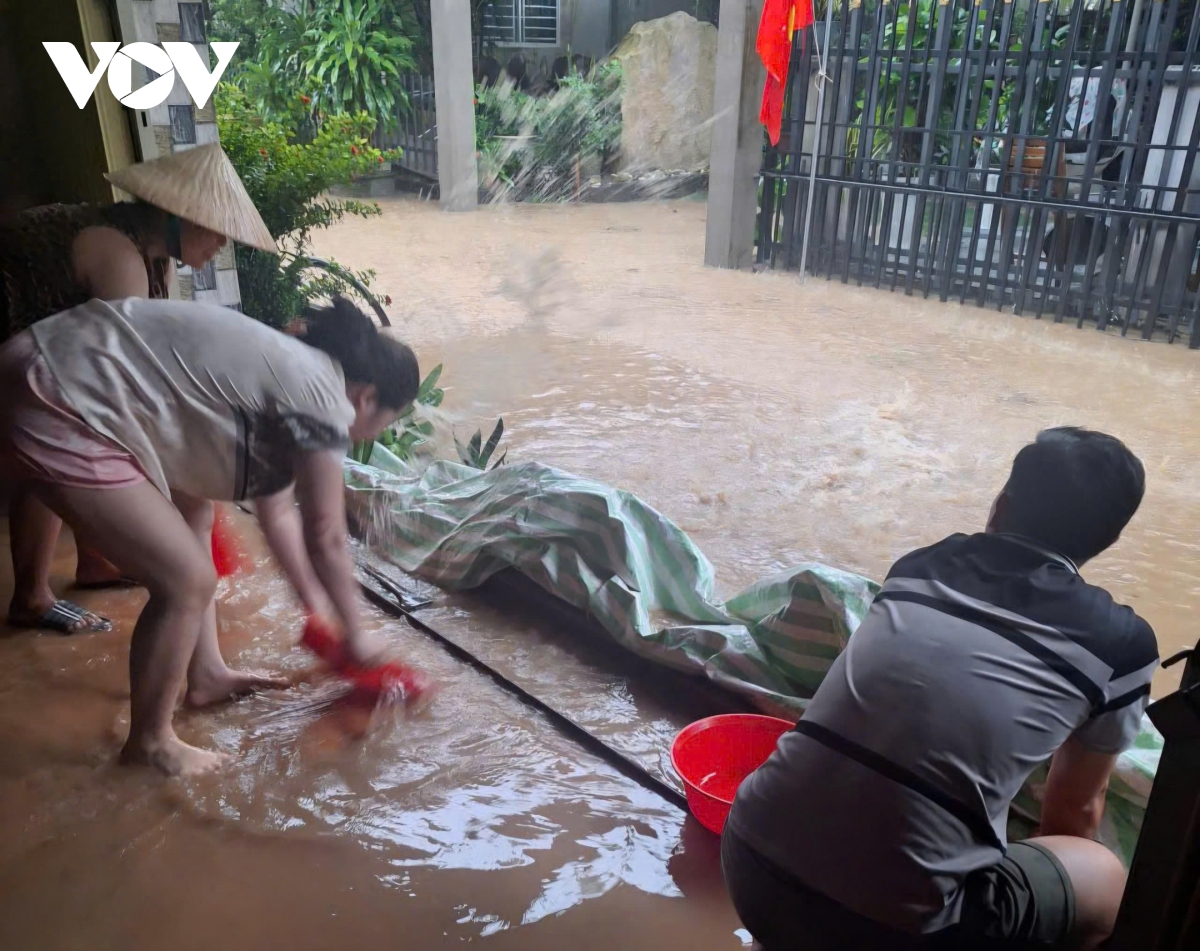 Nước dâng cao tại các khu dân cư trung tâm, nhiều tuyến đường, khu dân cư bị nước tràn vào nhà, có nơi ngập hơn nửa mét, nhiều hộ dân phải di chuyển đồ đạc, dùng ván , bao cát để ngăn nước tràn vào nhà. Một số hộ dân tranh thủ tát nước, dọn dẹp trong mưa, trong khi mưa vẫn chưa có dấu hiệu giảm.