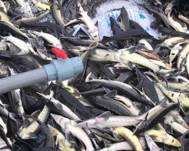Do mưa kéo dài đã làm vỡ hệ thống ống dẫn khiến cá tầm chết hàng loạt.