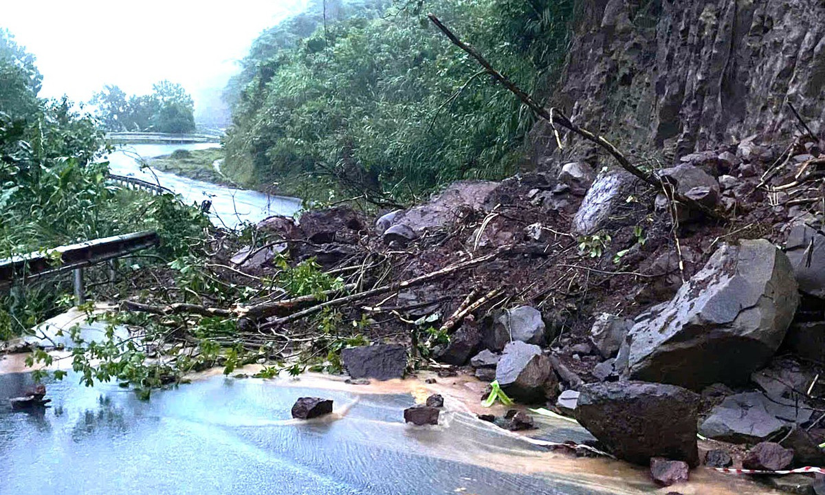Quốc lộ 15D đoạn qua xã La Lay bị sạt lở nghiêm trọng.