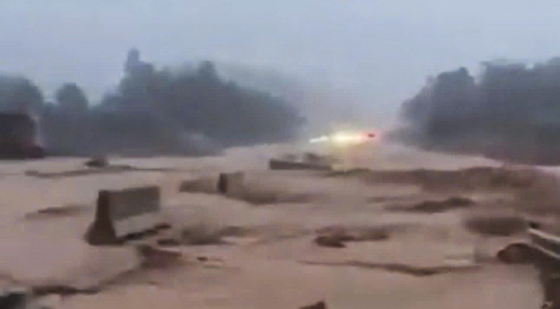Cao tốc La Sơn - Túy Loan tại Km12+000 - Km14+000 bị nước lũ băng ngang kèm sạt lở, tắc đường. Ảnh: HT