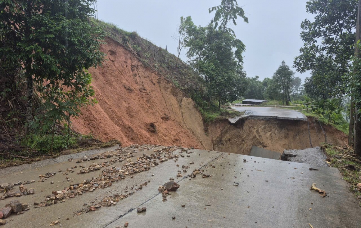 Một đoạn đường bị trôi, gây ách tắc giao thông.