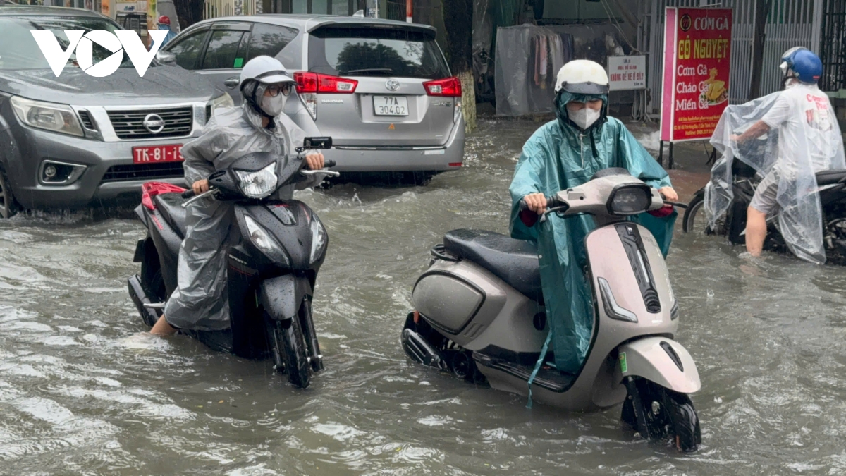 Nước ngập tại một số đường đô thị trung tâm tỉnh Quảng Ngãi.