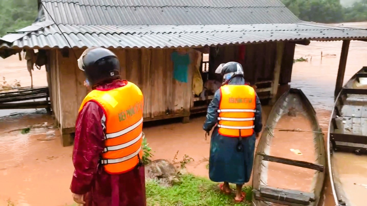 Tại xã Đakrông, nước dâng cao, lực lượng Đồn Biên phòng Ba Nang đã phối hợp với lực lượng chức năng địa phương di chuyển đồ đạc và di dời các hộ dân tại thôn Trại Cá bị ngập lụt lên khu vực an toàn.