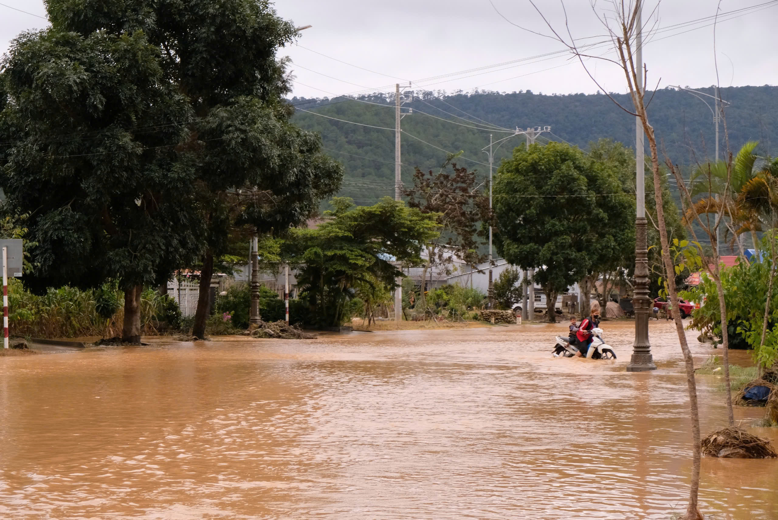 Chiều 17/11, cơn mưa lớn kéo dài khiến quốc lộ 20 đoạn qua xã Hiệp Thạnh, tỉnh Lâm Đồng, bị ngập sâu từ 0,2–0,5 m, khiến các phương tiện không thể lưu thông. Tại một số hẻm của khu dân cư Định An, vùng sản xuất rau hoa của người dân cũng bị ngập từ 0,5–1m.