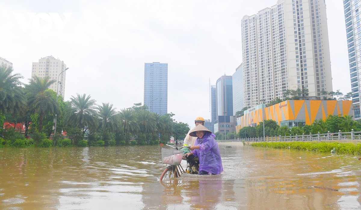 Mưa lớn ở Hà Nội gây ngập sâu ở hàng loạt tuyến đường của thủ đô trong sáng 7/10