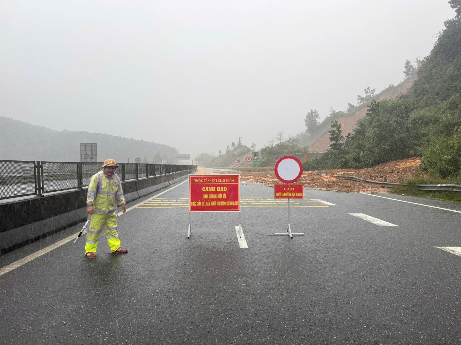 Tuyến cao tốc La Sơn - Túy Loan bị sạt lở, gây chia cắt giao thông.