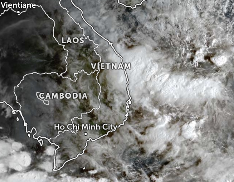Ảnh mây vệ tinh khu vực Trung bộ và Nam bộ sáng sớm 24-10. Nguồn: Z.E